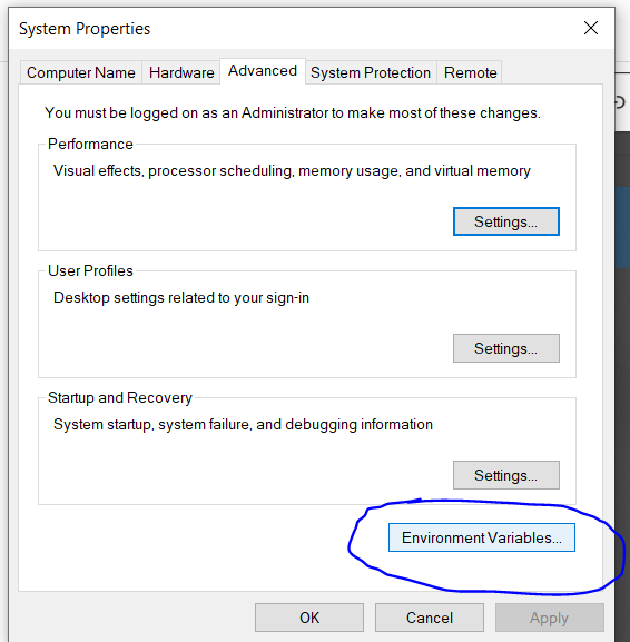 Click on environment variables